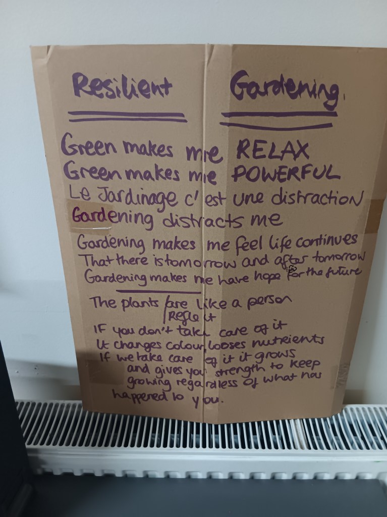 Gardening differs from some other activities in that it involves substantial manipulation of the natural environment. It provides opportunities for self-expression, experimentation and a sense of achievement. Some have referred to a sense of hope for the future associated with the anticipation of planting and watching things grow. Therefore I am interested in how gardening differs from forms of “ecotherapy” based on more passive encounters with green environments.